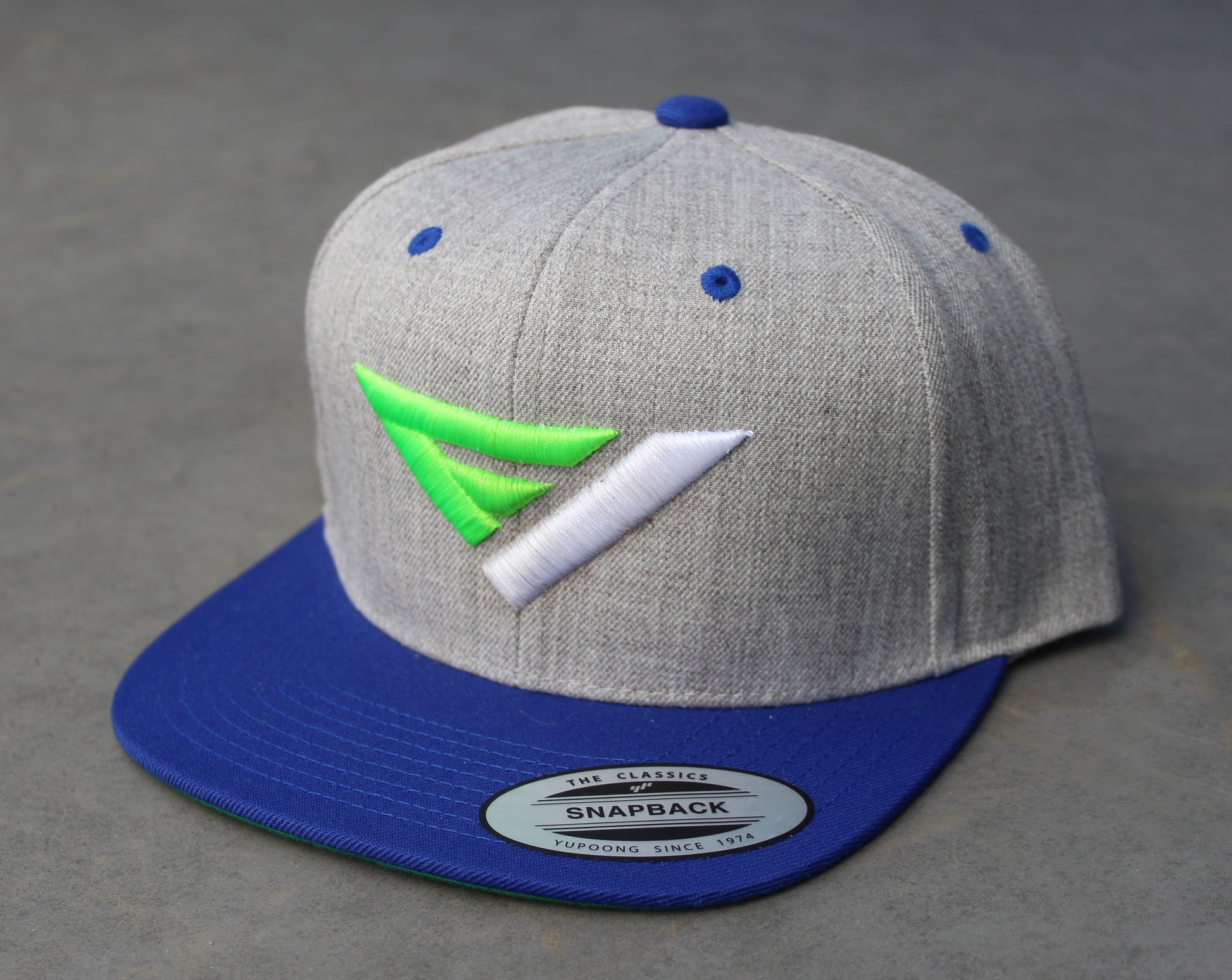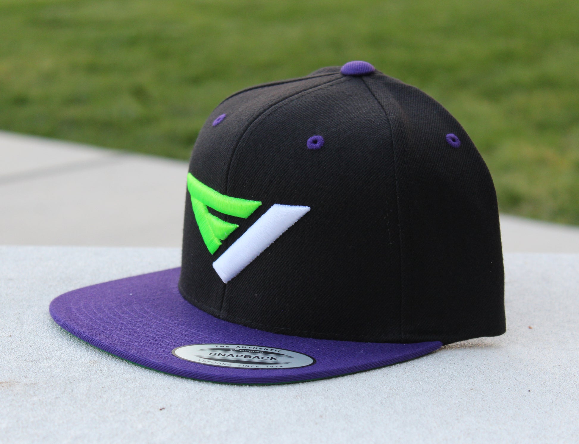 Our Flow Vision Logo'd Snapback is classic snapback made of a blend of 80% Acrylic / 20% Wool. It is adjustable with a plastic tab closure and with a Flat bill....Purple, Red, Black or Blue visor with our logo 3D Puff Embroidered front and center...